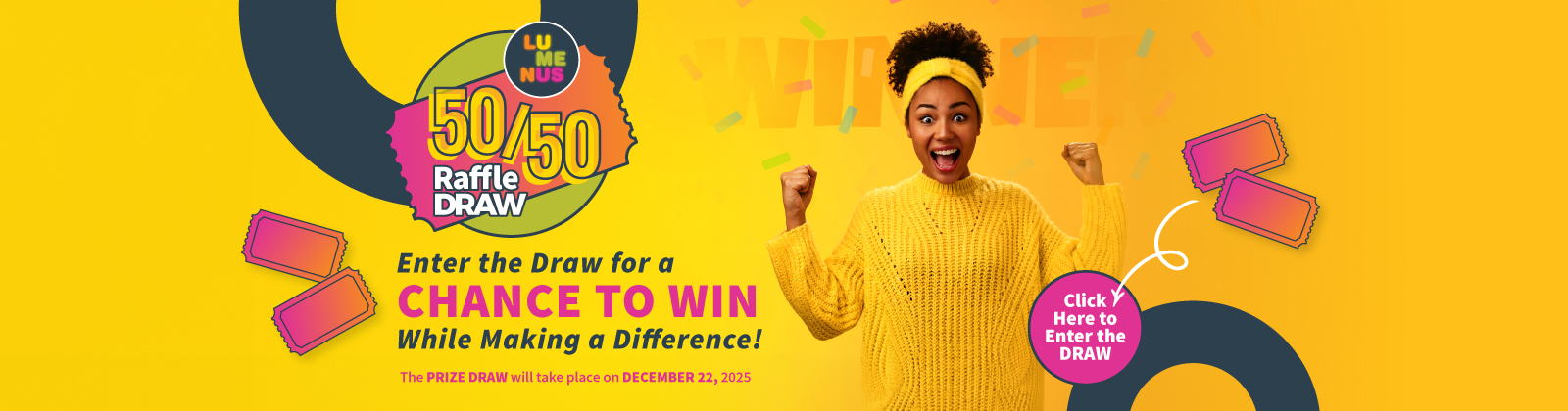 Lumenus’ 50/50 Raffle begins on October 1st! Purchase tickets to be entered into the 50/50 raffle draw.