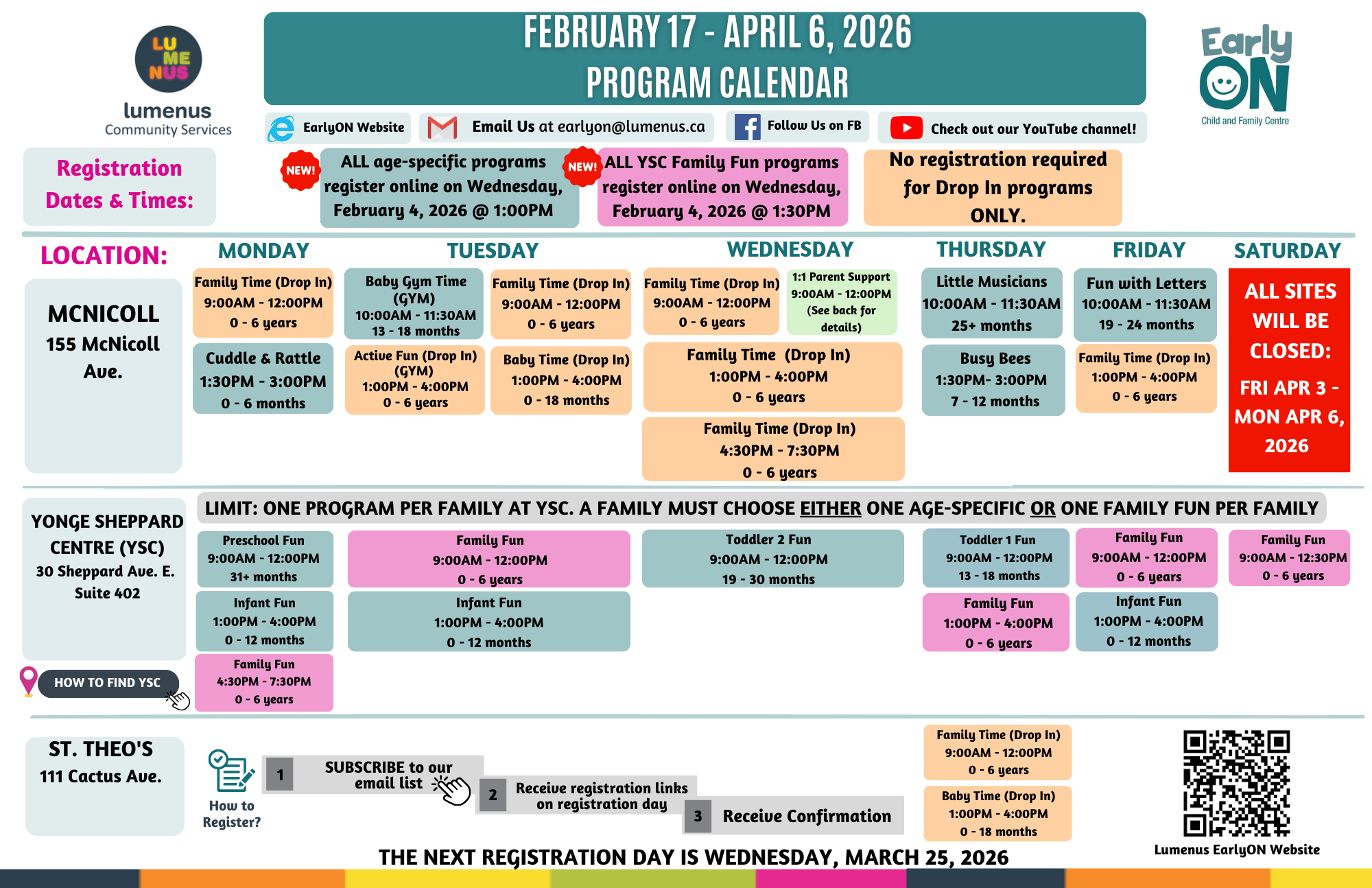 Click to view: January to February 2026 Program Calendar | February to April 2026 Program Calendar